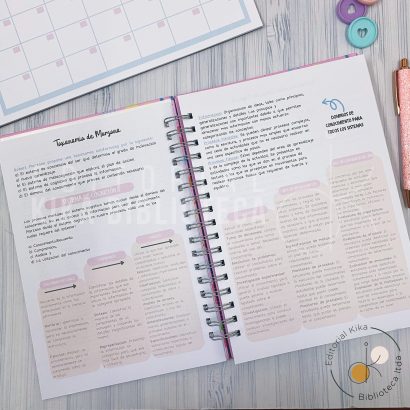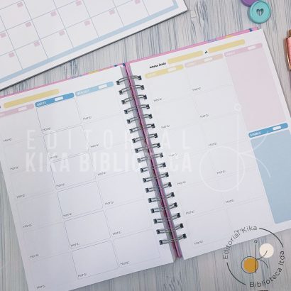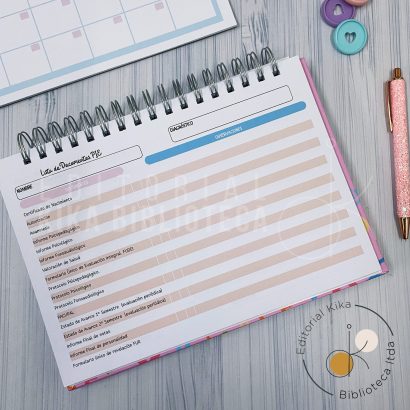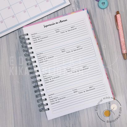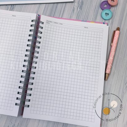Tamaño 18X25cm aprox – Tapa dura termolaminado – Anillo metálico doble cero – 220 paginas – Papel Bond 105 gr – Bolsillo de papel – Una lámina de stickers – Cierre Elástico