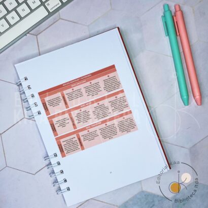 Impresión a color – Papel de 105 gramos – Tapa dura y termolaminada – Anillado metálico – Cierre elástico – 68 paginas